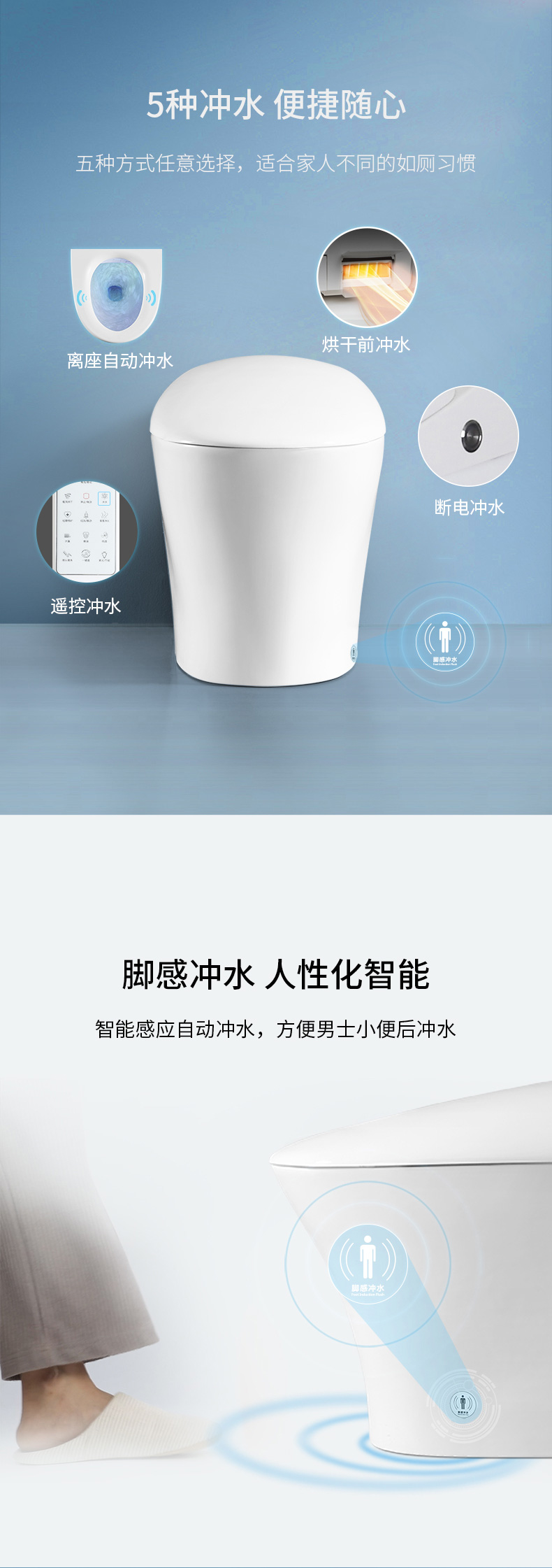 5、腳感沖水、離座沖水、遙控沖水、停電手動沖水、